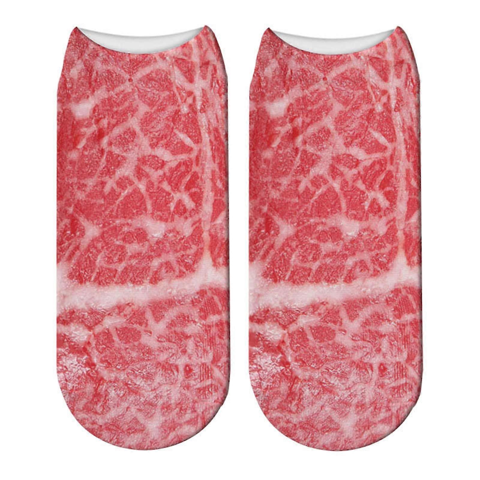1 Pair of 3D Digital Printing Meat Socks, a Funny Beef and Pork Simulation Short Sock for Unisex Men, Women, and Teens this Halloween.