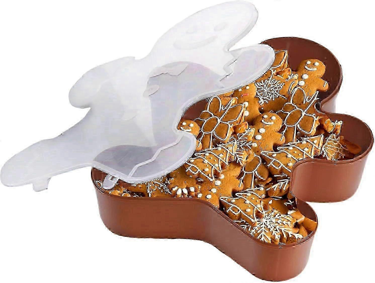 A Christmas Serving Tray and Cookie Box with a Lid, a Cute Holiday Storage Container featuring a Gingerbread Man and a Snowflake for Snacks and Candy.
