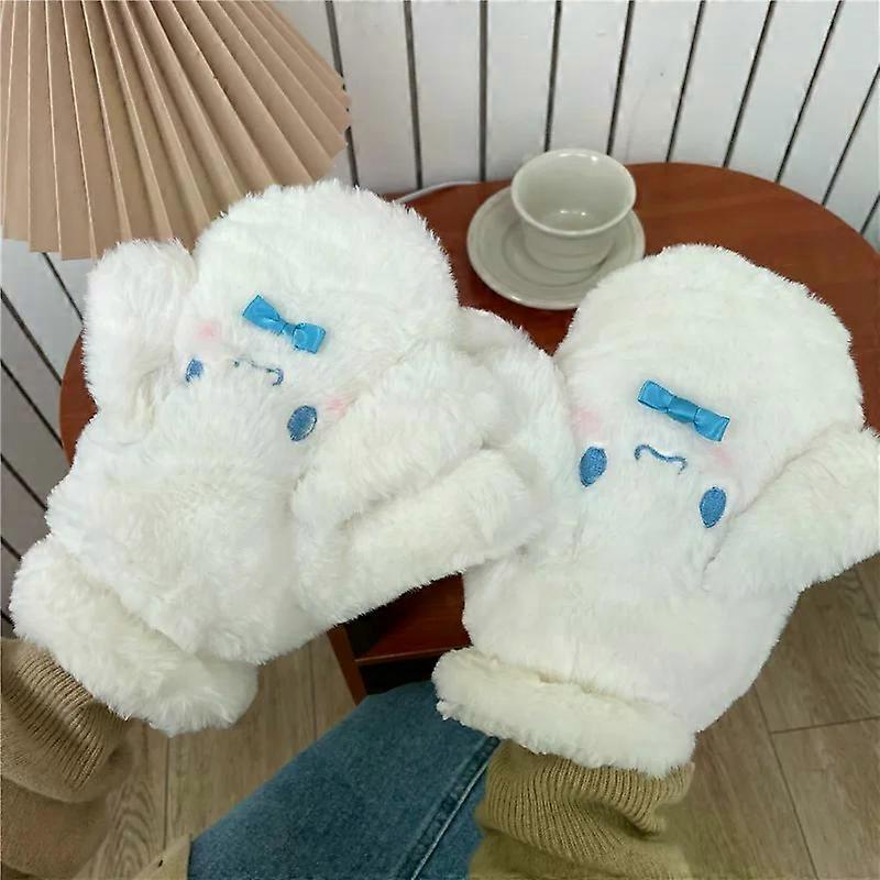 Cartoon Gloves Scarf Set Soft Winter Thick Fingerless Gloves Girls White Kawaii Windproof Thickened Warm Scarf Outdoor Riding