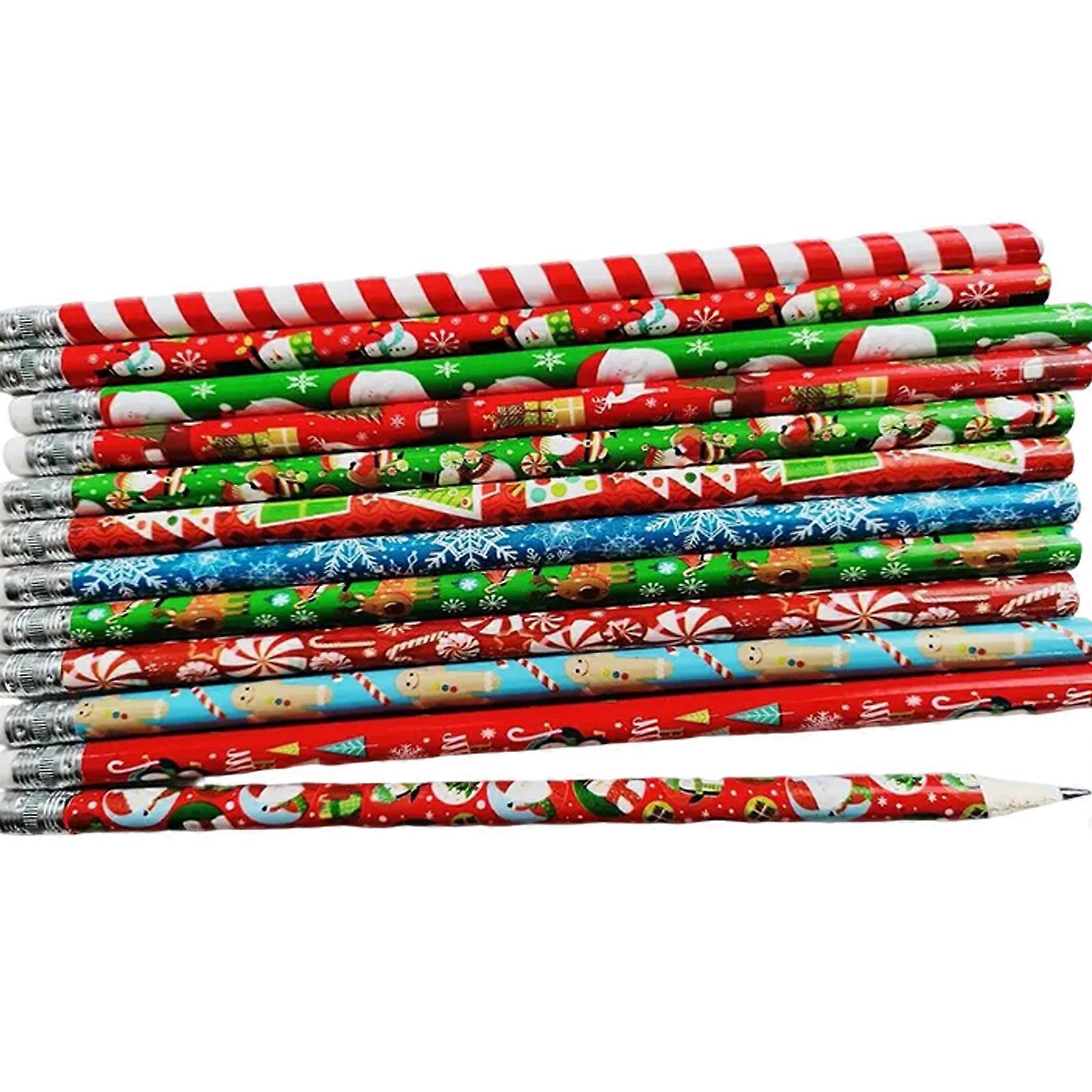 Pack Of 48 Cartoon Christmas Pencils with Erasers for Kid Student Game Reward Wood Drawing Pencils for Writing Drawing Multicolor