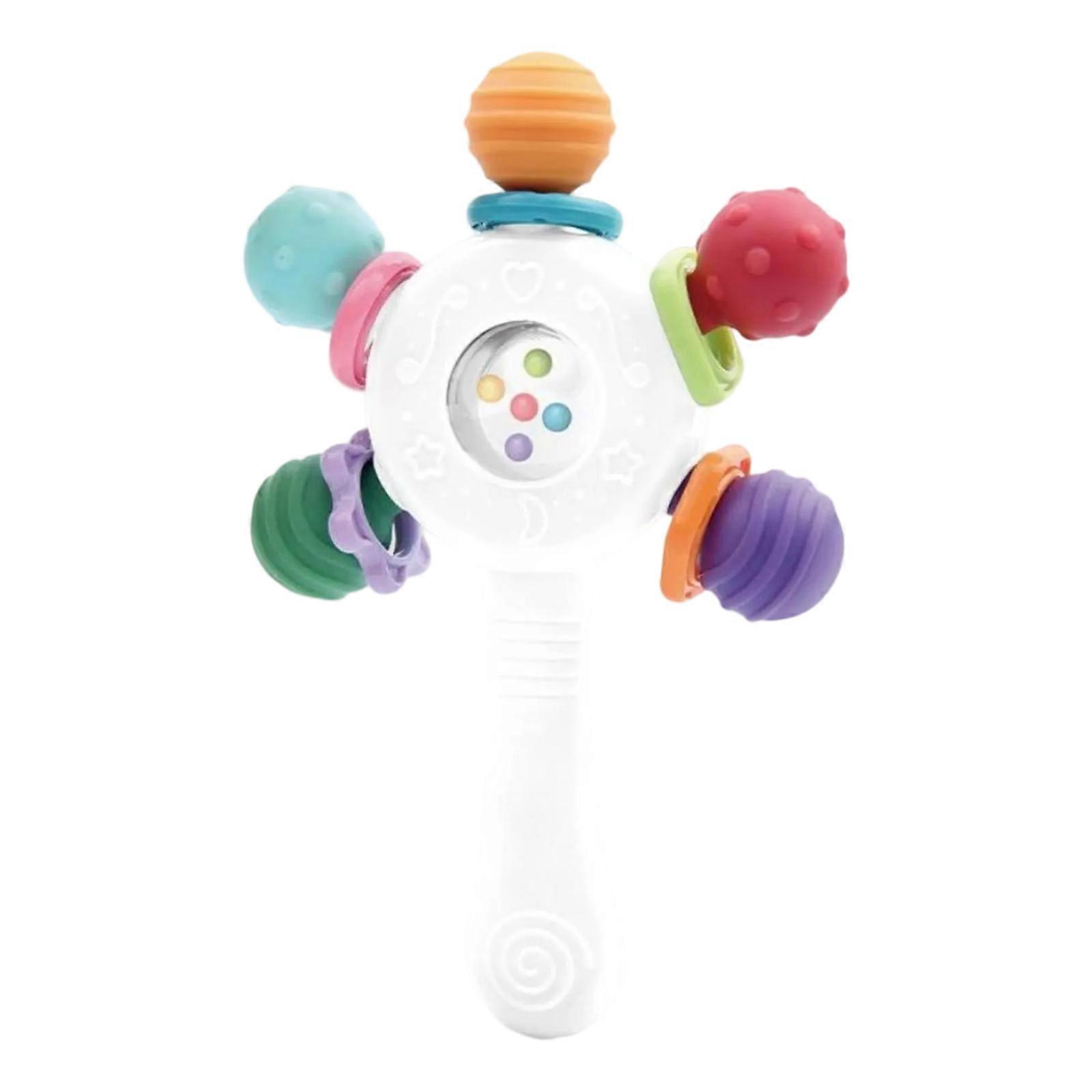 Infant Development Toy Rattle Teether Toy With Easy To Clean Design And Engaging Bright Color For Baby Sensory Learning White