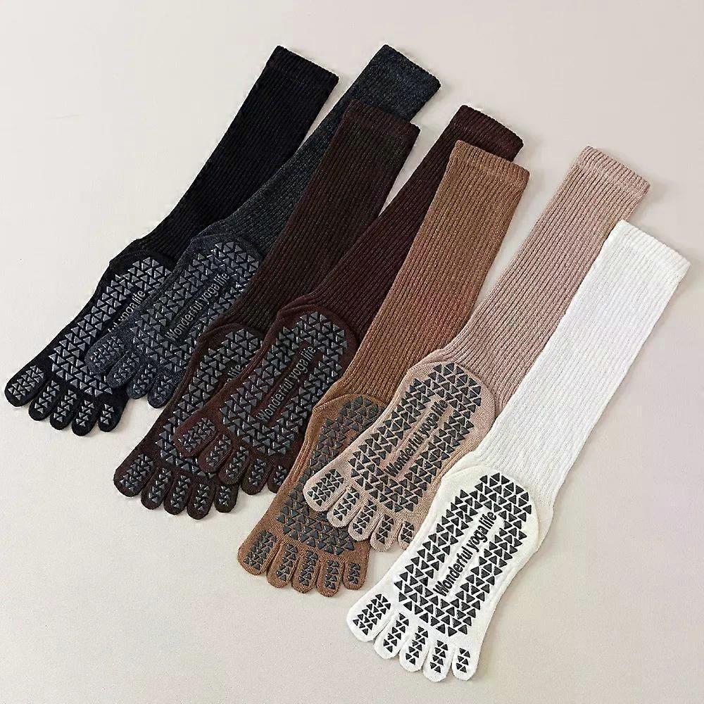 Five Fingers Sports Toe Socks Separate Fingers Silicone Anti-slip Women Yoga Socks Elasticity Solid Color Sport Pilates Socks