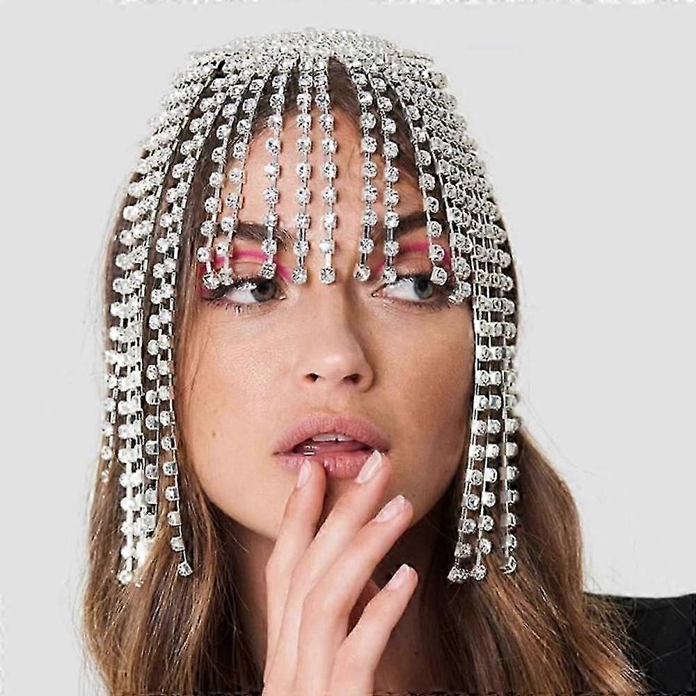 Stonefans Gorgeous Long Tassel Headpiece Rhinestone Hair Chain Headband Bling Bridal Hat Women Crystal Hollow Head Chain JewelryZZ50
