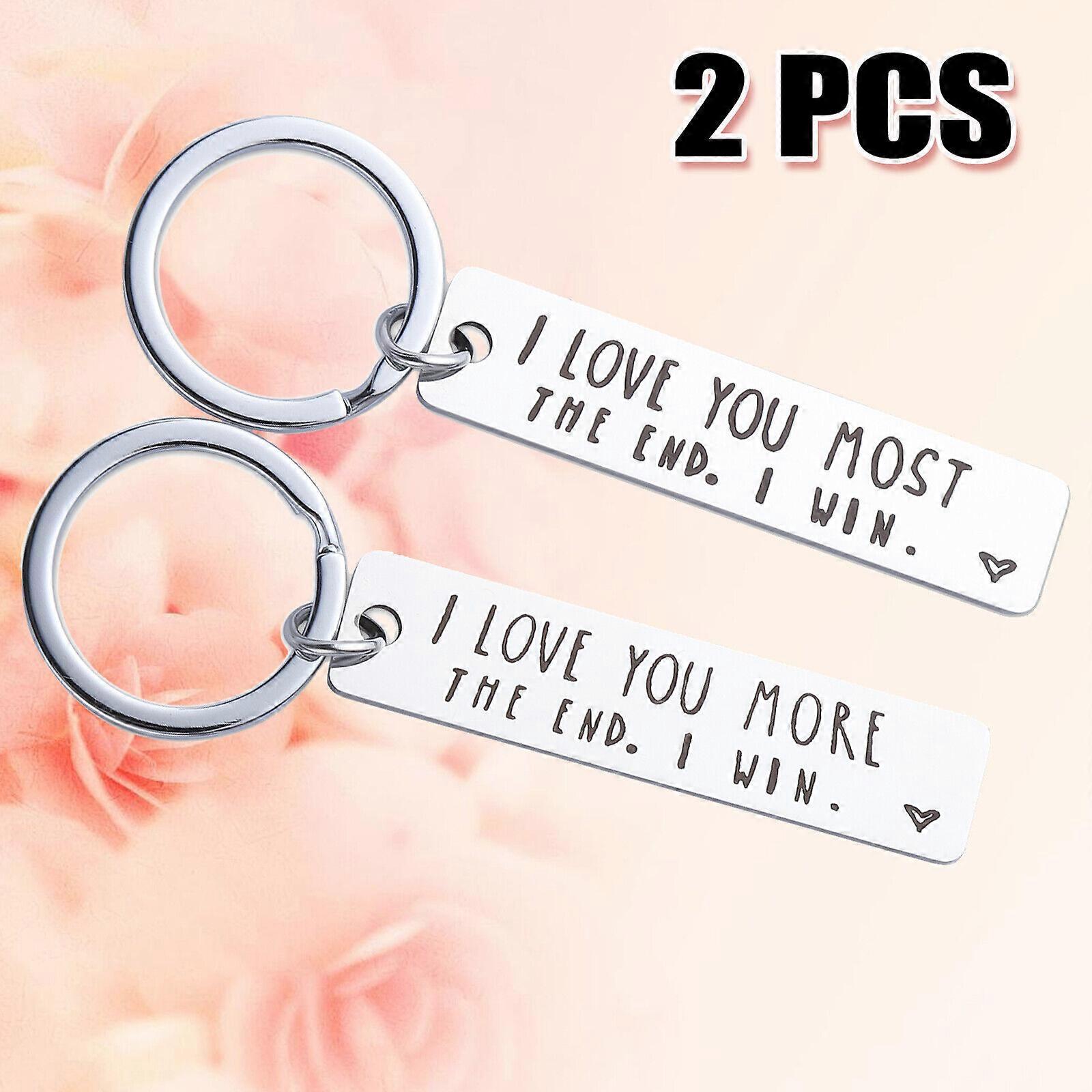 I LOVE YOU MORE THE END Couple Lovers Square Stainless Steel Long Keychain Gift