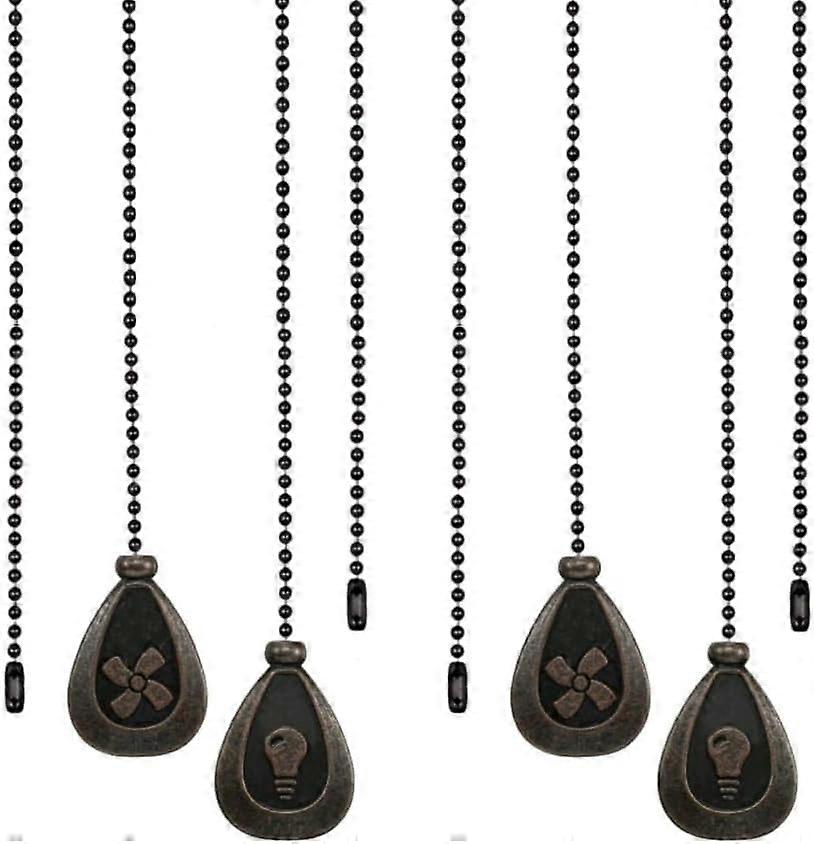 Bronze Ceiling Fan Pull Chain Set, Decorative Fan Pull Chain Pendant Extension, 12 Inches Lighting & Fan Beaded Ball Chain Extender with Connector (4