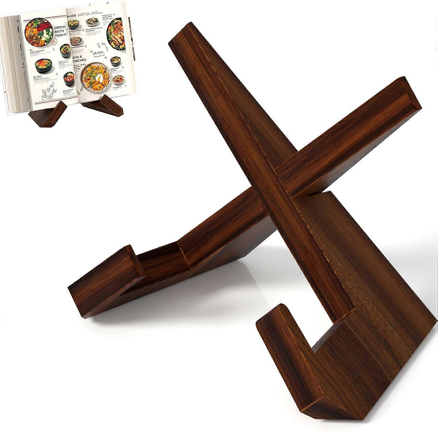Cookbook Stand, Cookbook Holder for Kitchen,Black Recipe Book Holder for Counter,Wooden Plate Holder Display Stand for Tabletop (Dark Brown) Dark Brow