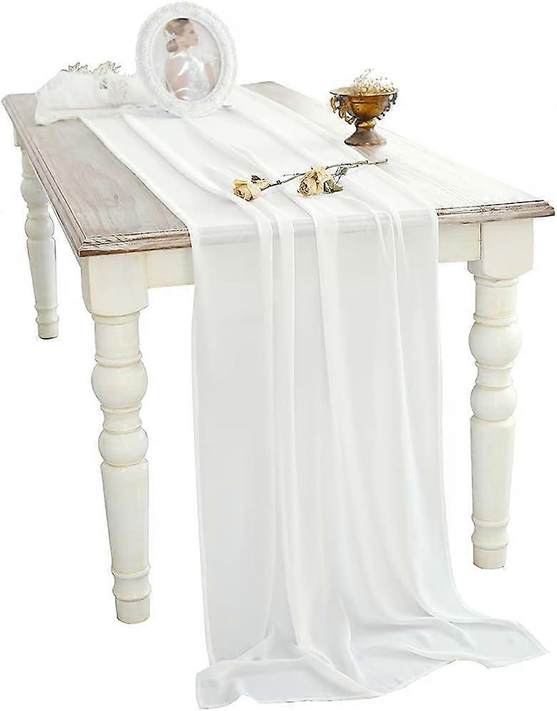 27 x 120 inches White Chiffon Table Runner, Soft Semi-transparent Table Runner, Chiffon Silk Tablecloth Tablecloth, Rustic Wedding Bridal Baby Shower