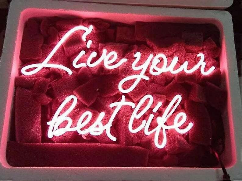 Live Your Best Life Neon Sign, Inspirational Glass Tube Wall Light for Home Office & Bedroom, 14"x9"