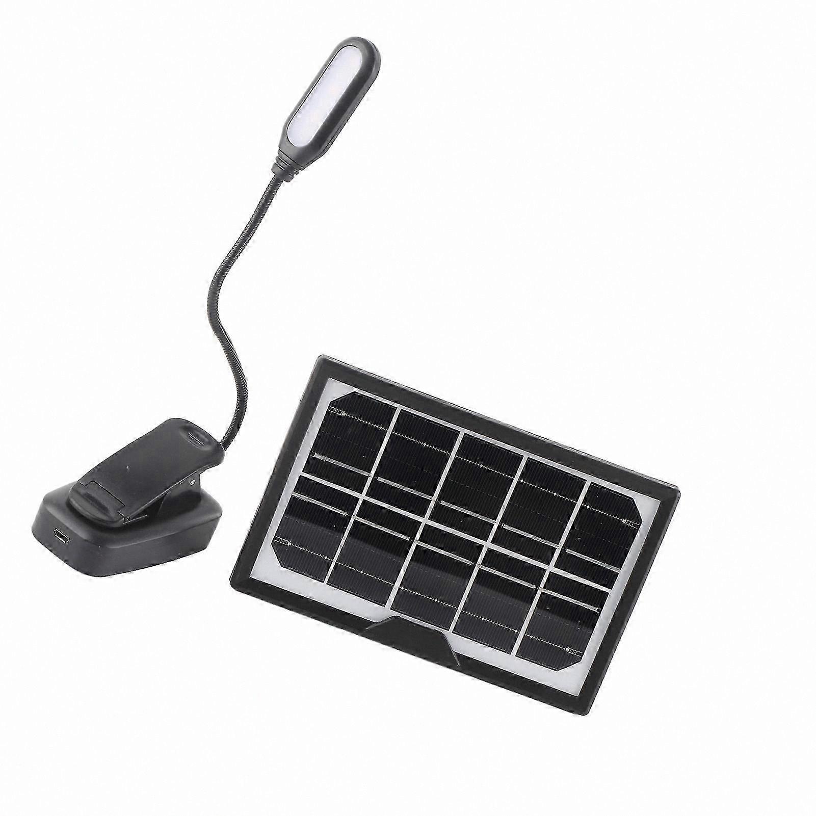 Solar Rechargeable Clamp Lamp Warm Daylight White Light Flicker-Free Flexible Gooseneck Clip-On Book Light 5V Item Type: Solar Rechargeable Clamp Lamp Material: ABS Battery Information: 1 x 3.7V 1000mAh Lithium Battery (Built-in) Maximum Working Power: 1.8W Maximum Power Point Current: 0.36A Short Circuit Current: 0.4A Power Tolerance: ±3%