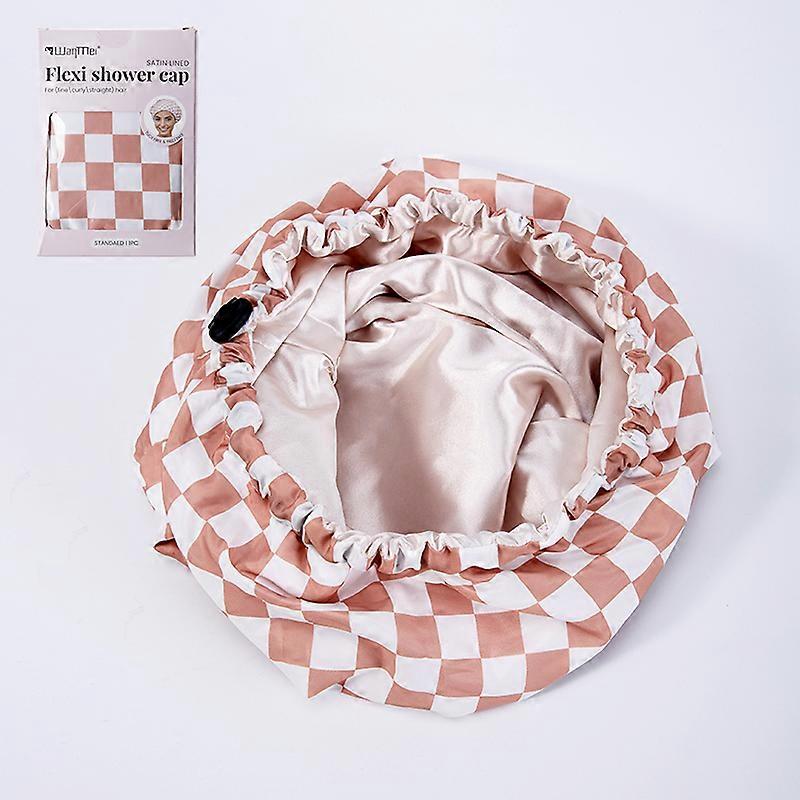 WANMEI Grille Rose Blanc Bonnets de douche - Doubl�� en satin flexible, grand bonnet de douche large pour femmes et hommes, r��glable, accesso