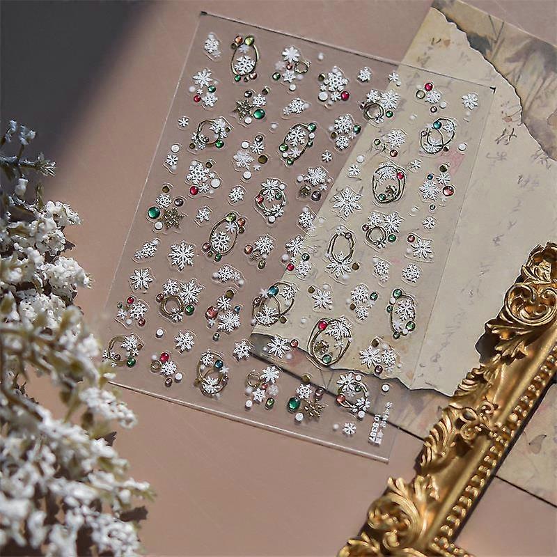 Charmant vacances �� pois flocon de neige d��calcomanies pour ongles femme impression d'ongles autocollants sur��lev��s Yuletide ornements d'ong