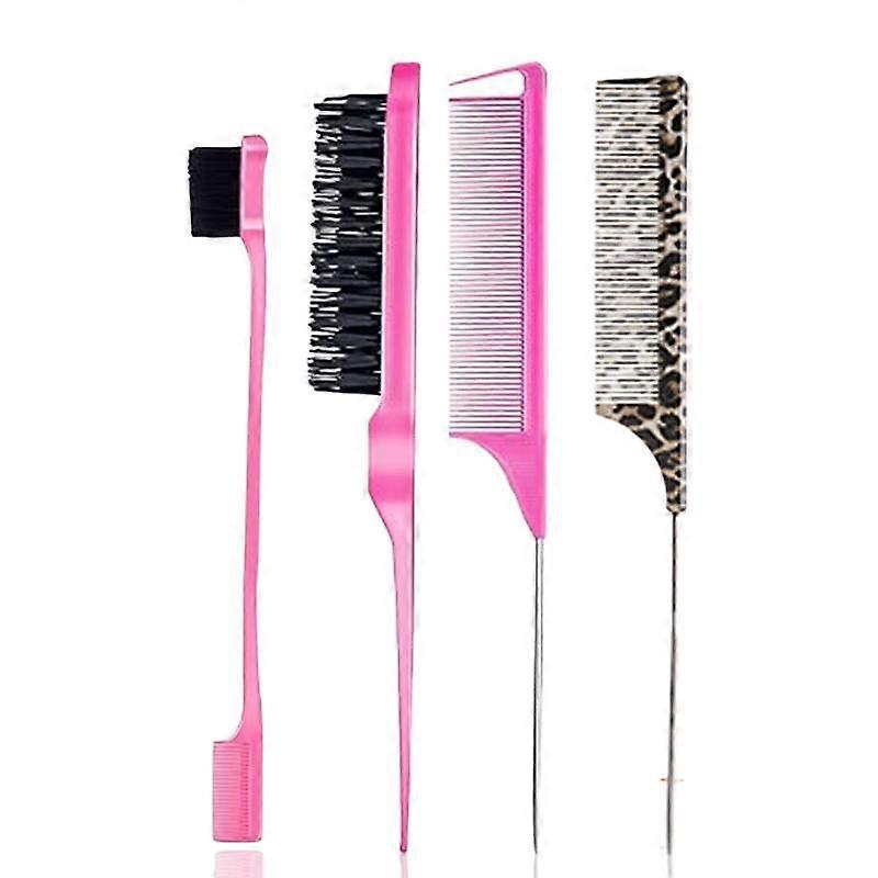 Ensemble de peignes de coiffure 3/4 pi��ces, brosse taquine, peigne �� queue de Rat imprim�� l��opard, peigne �� queue, brosse �� bord pour le bro