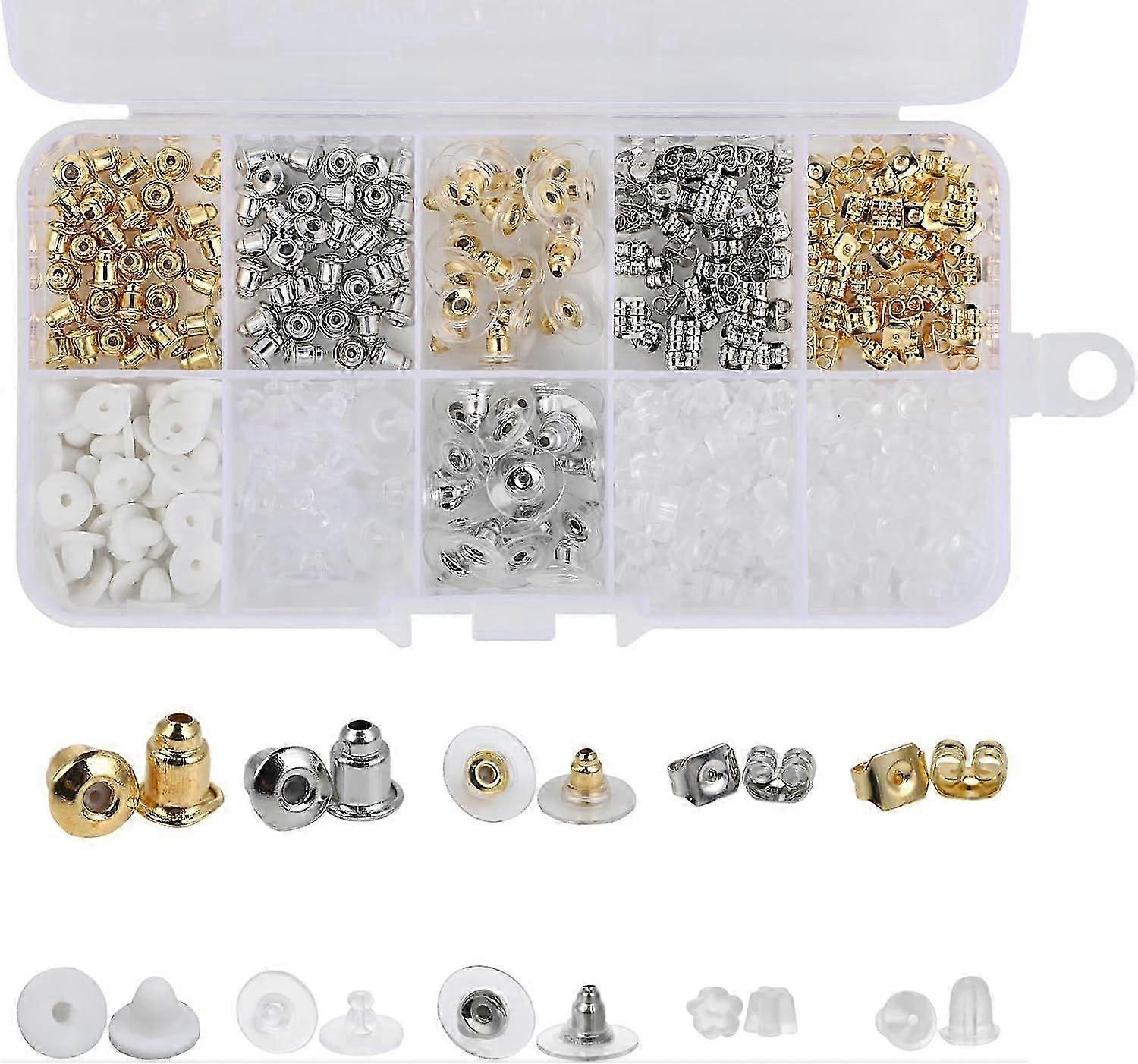 450Pcs Earring Backs Set - 10 Styles Butterfly Earring Stoppers - Clear Non-Allergenic Rubber Plastic Earring Backs Safety Backs for Various Earrings