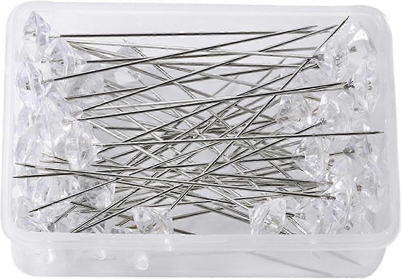 100 Pcs Diamond Crystal Head Pins Clear Diamante Pin for Wedding DIY Crafts & Boutonniere Ideal Hat Pins - Flower Bouquet Accessories - Sewing & Dres