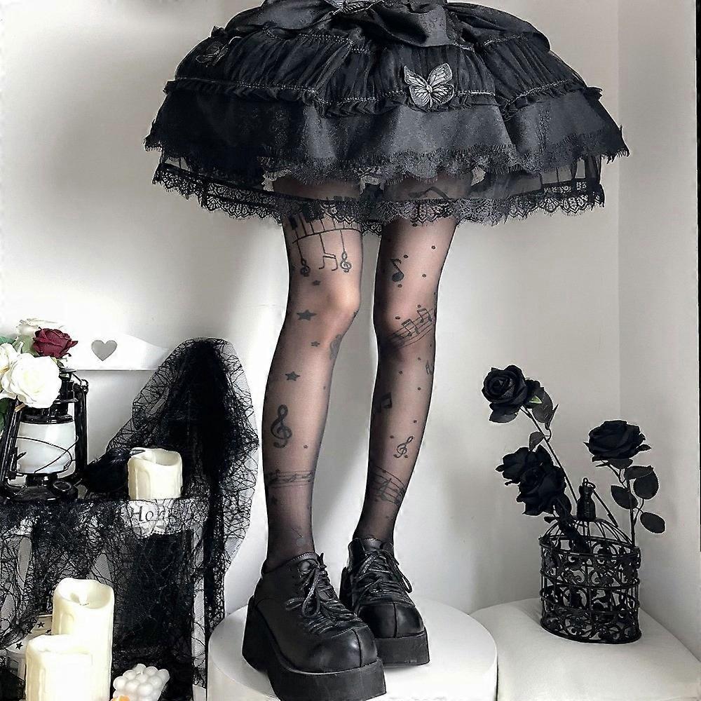 New Ultra-Thin Patterned Stockings Stretchy Fabric JK Style Music Note Tights Symbol Print Piano Tights Club Party