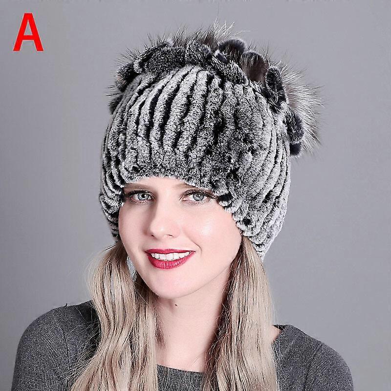 Women Real Rex Rabbit Fur Hat Winter Warm Knitted Stretch Beanie Outdoor Caps