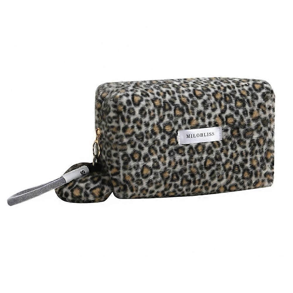 Fashion Fuzzy Makeup Bag Leopard Print Soft Toiletry Organizer Large Capacity Portable Cosmetic Bag Toiletry Organization