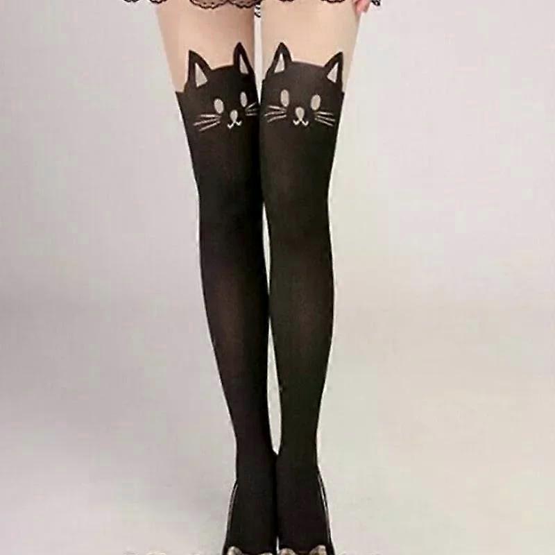 Chaussettes longues mignonnes �� motif de chat Animal de dessin anim��, bas de cuisse �� la mode d'��t�� au-dessus du genou, accessoires imprim��s
