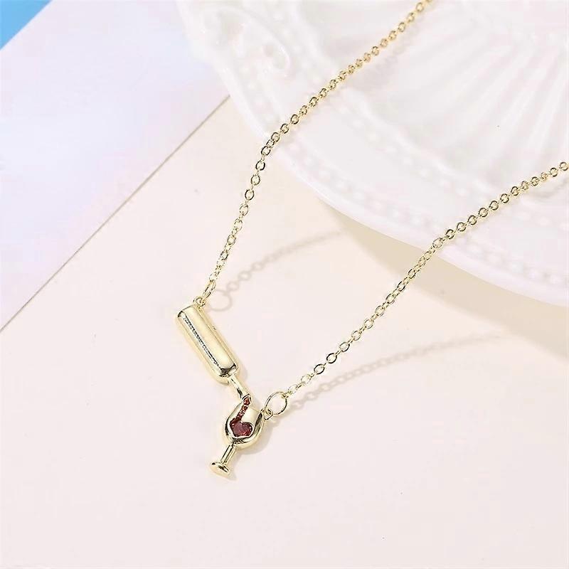 Colliers de bouteille de vin en forme de c?ur rouge pour femmes, strass, couleur or Rose argent, pendentif en verre d'amour, bijoux �� breloq