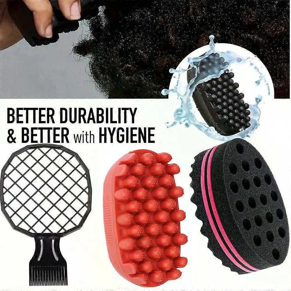 Brosse ��ponge magique en Silicone �� grands trous, 3 pi��ces, pour cheveux ondul��s, bobines et Afro, outil de soins capillaires pour hommes et