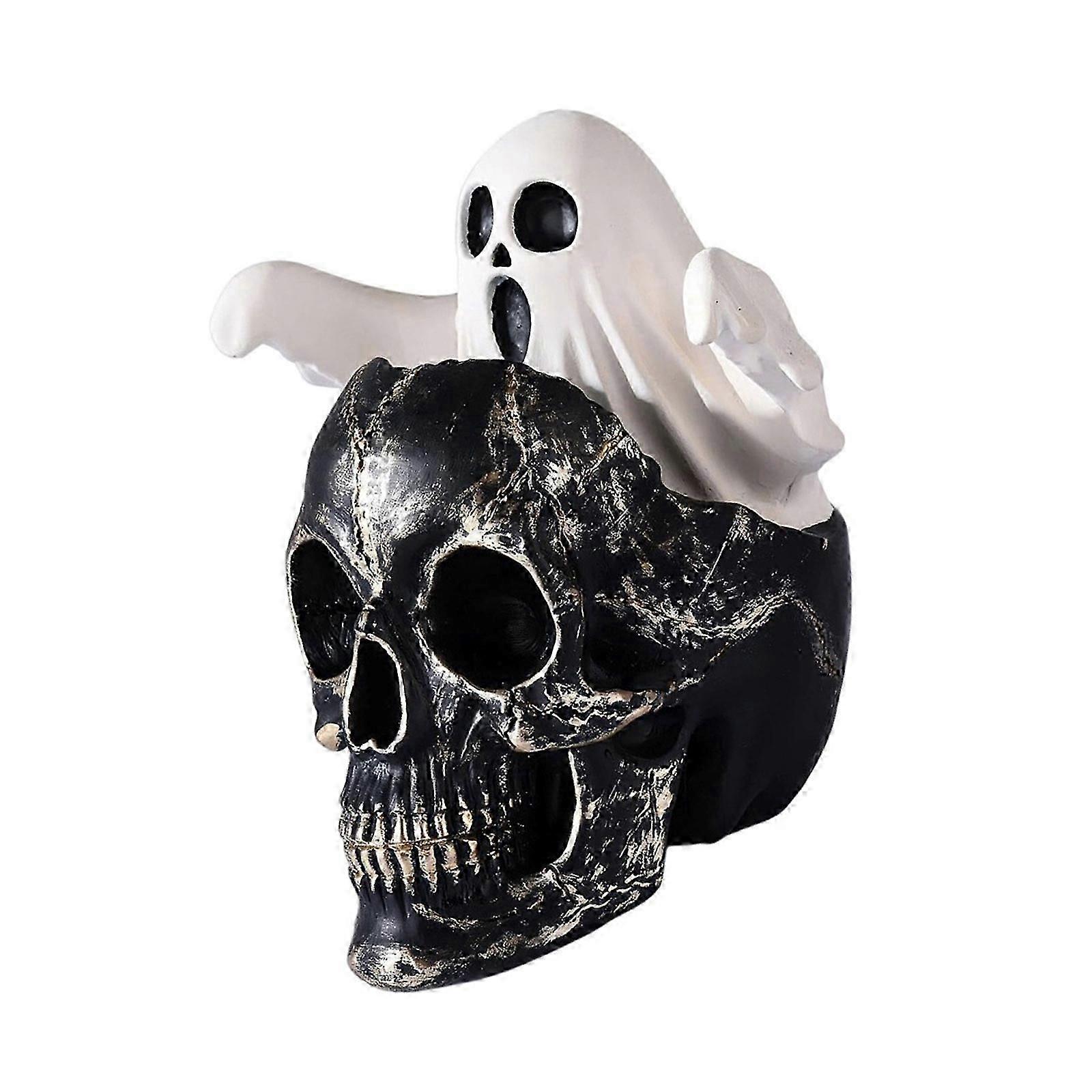 Specter With Skull Design Resin Sculptures Statue Halloween Decoration For Indoor Space Book shelf Display White Cs fast