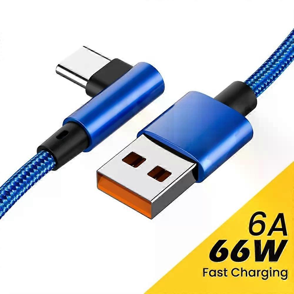 6A 66W 90�� Right Angle Type C Fast Charging Cable For Samsung Huawei OPPO VIVO POCO Gaming Charger 0.25-3M Nylon Braided Wire
