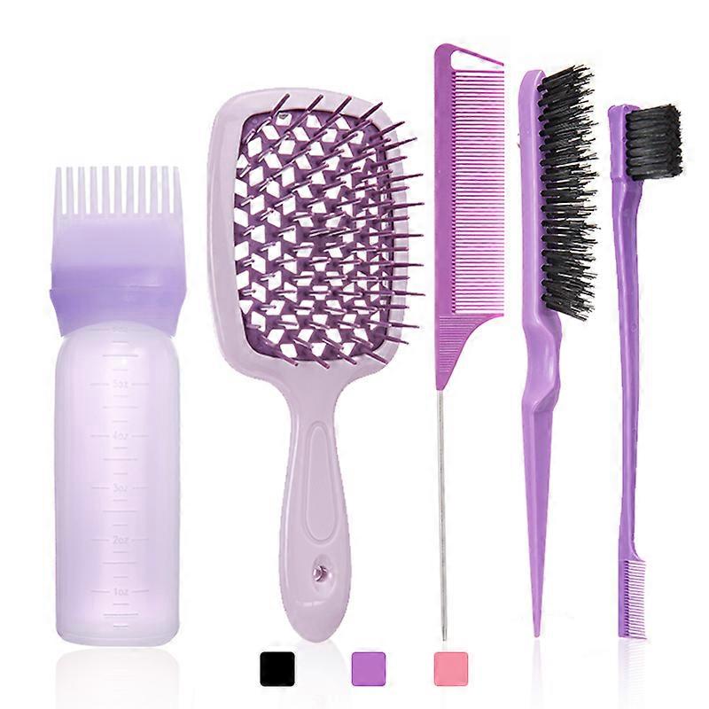 Ensemble de 5 brosses �� cheveux d��m��lantes pour perruque, peigne creux violet, brosse �� double bord, peigne de coiffure pour outils boucl��s/