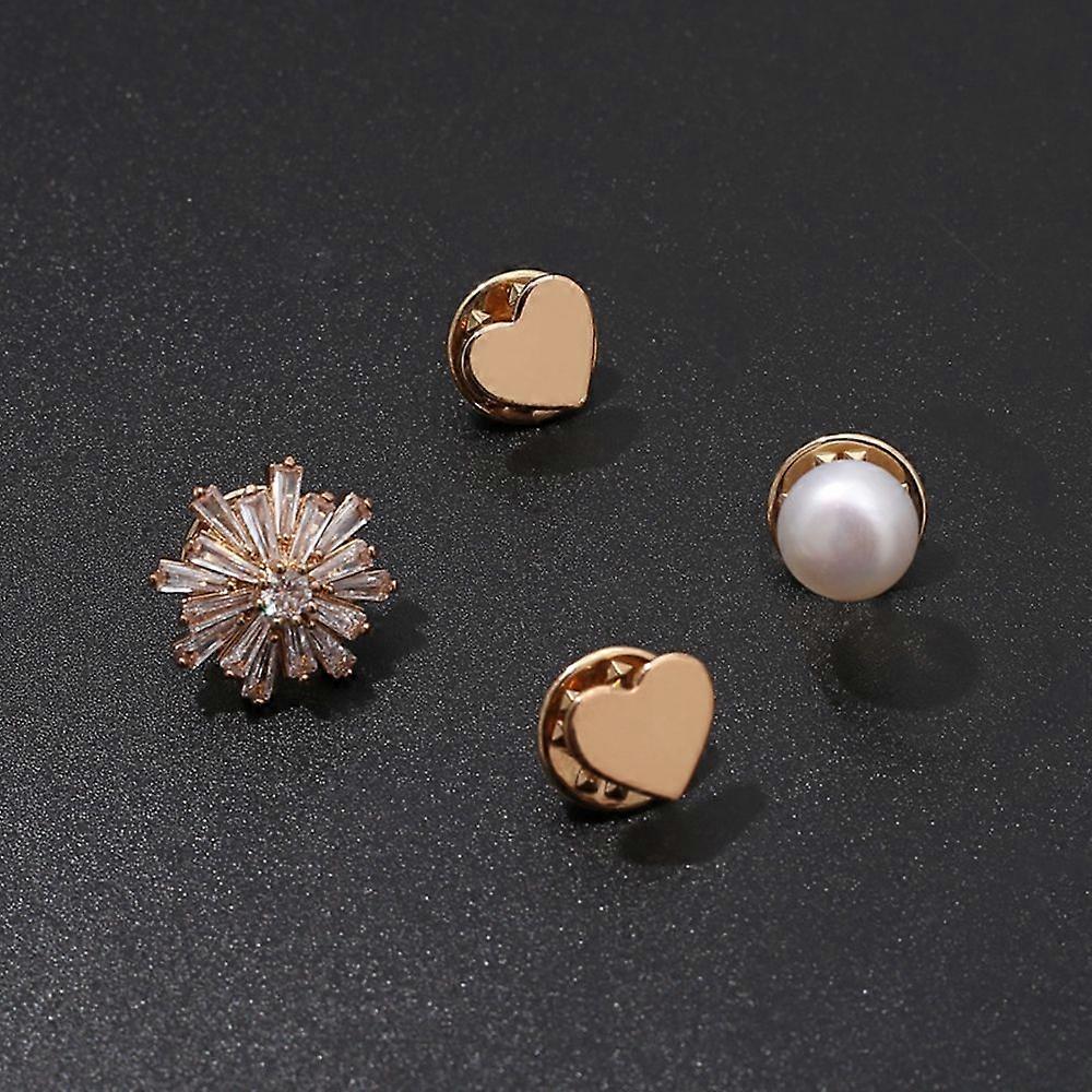 4PCs/Set Heart Brooch Cardigan Pin Fixed Styles Clothes Pearl Decorative Brooch for Women Anti-Exposure Neckline Buckle Jewelry
