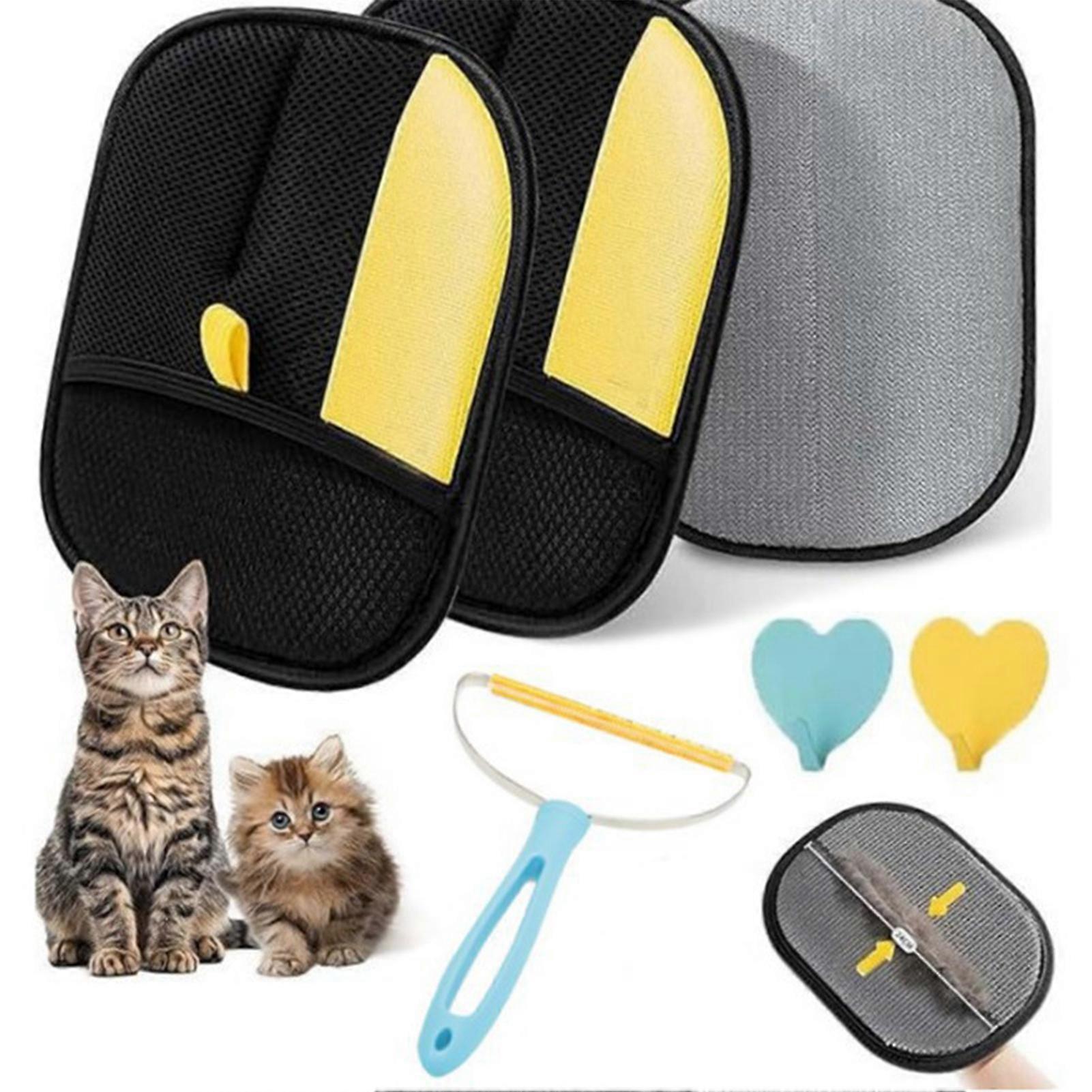 Pet Hair Removal Glove for Dogs & Cats, Reusable Static Fur Remover Set with Lint Brush for Clothes Furniture & Car