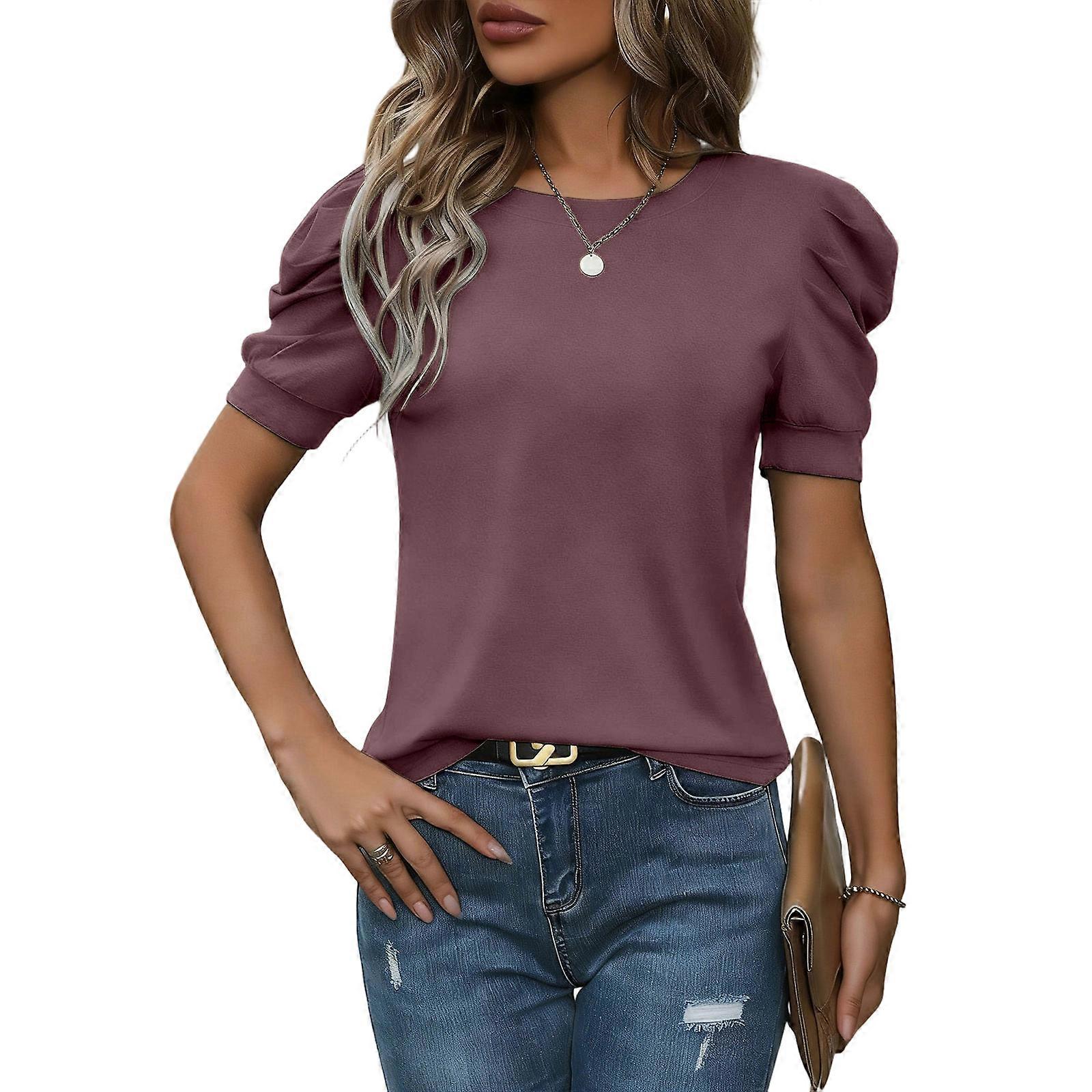 Women's top Fluffy Short Sleeved Shirt Casual T-Shirt Women's Fashionable Cute T-Shirt Burgundy XL