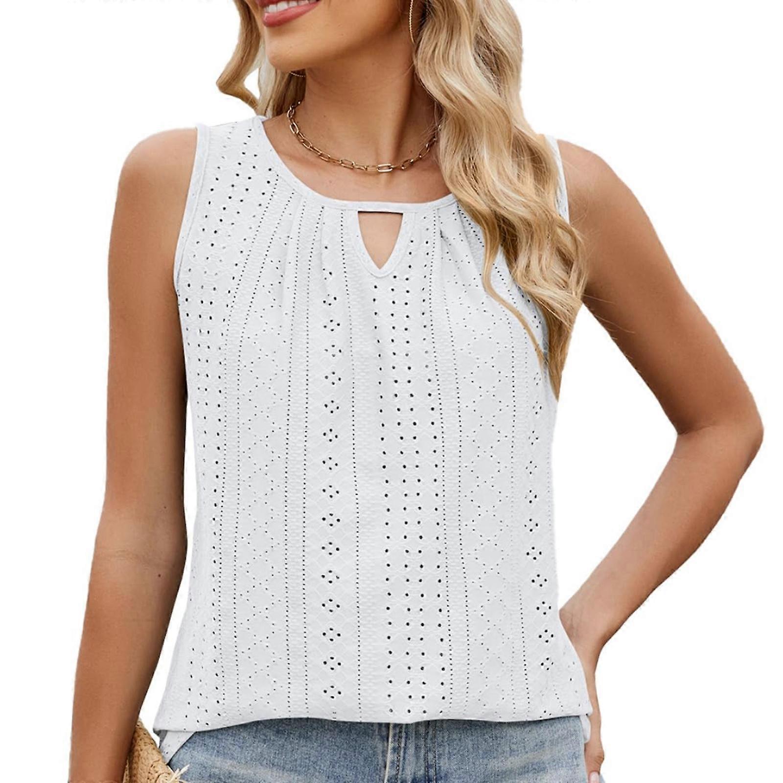 Women's loose-fitting casual sleeveless hollow neckline camisole, fashionable, breathable and flowing clothing White XL