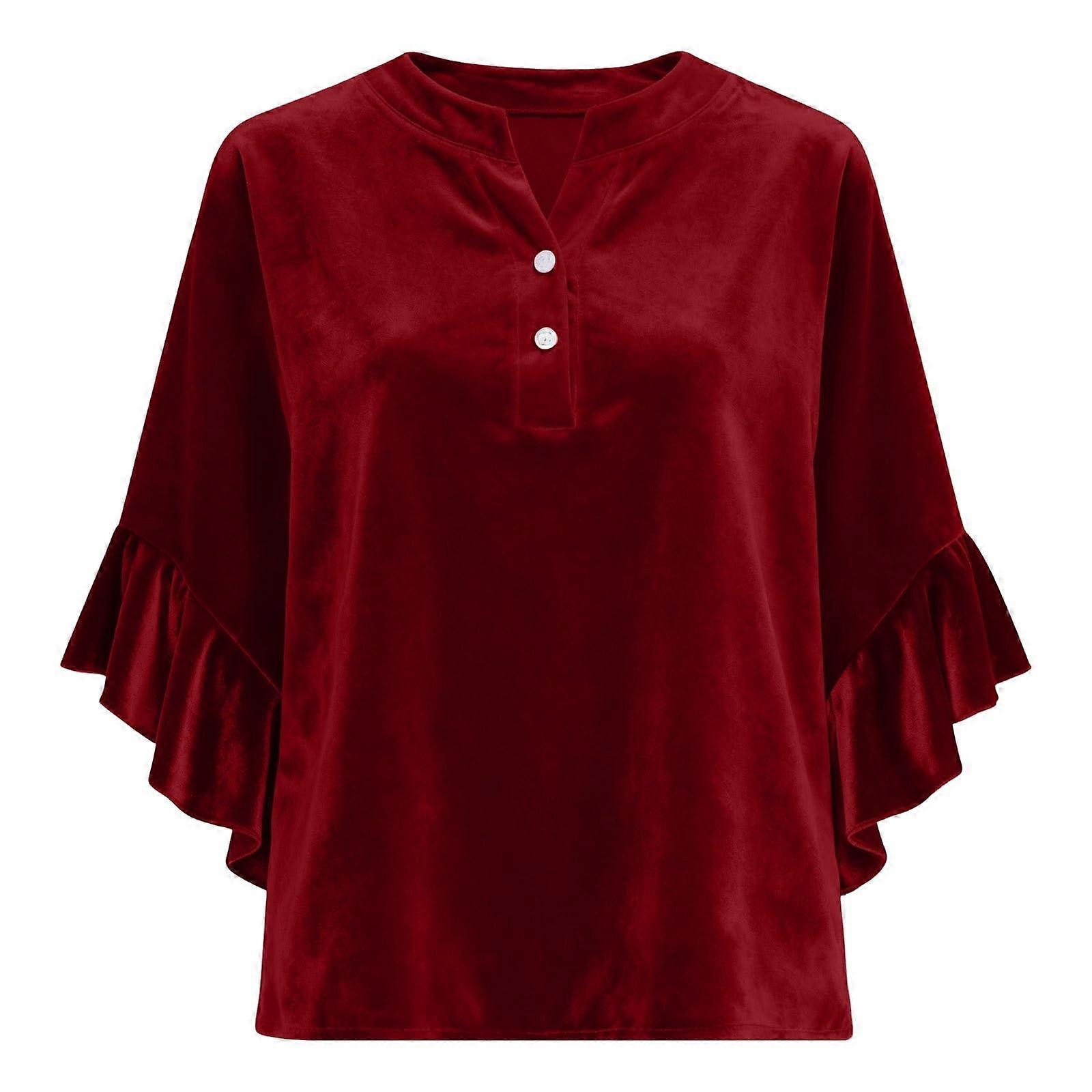 Women's top, elegant V-neck long-sleeved pullover, three-quarter sleeve casual shirt Burgundy XL