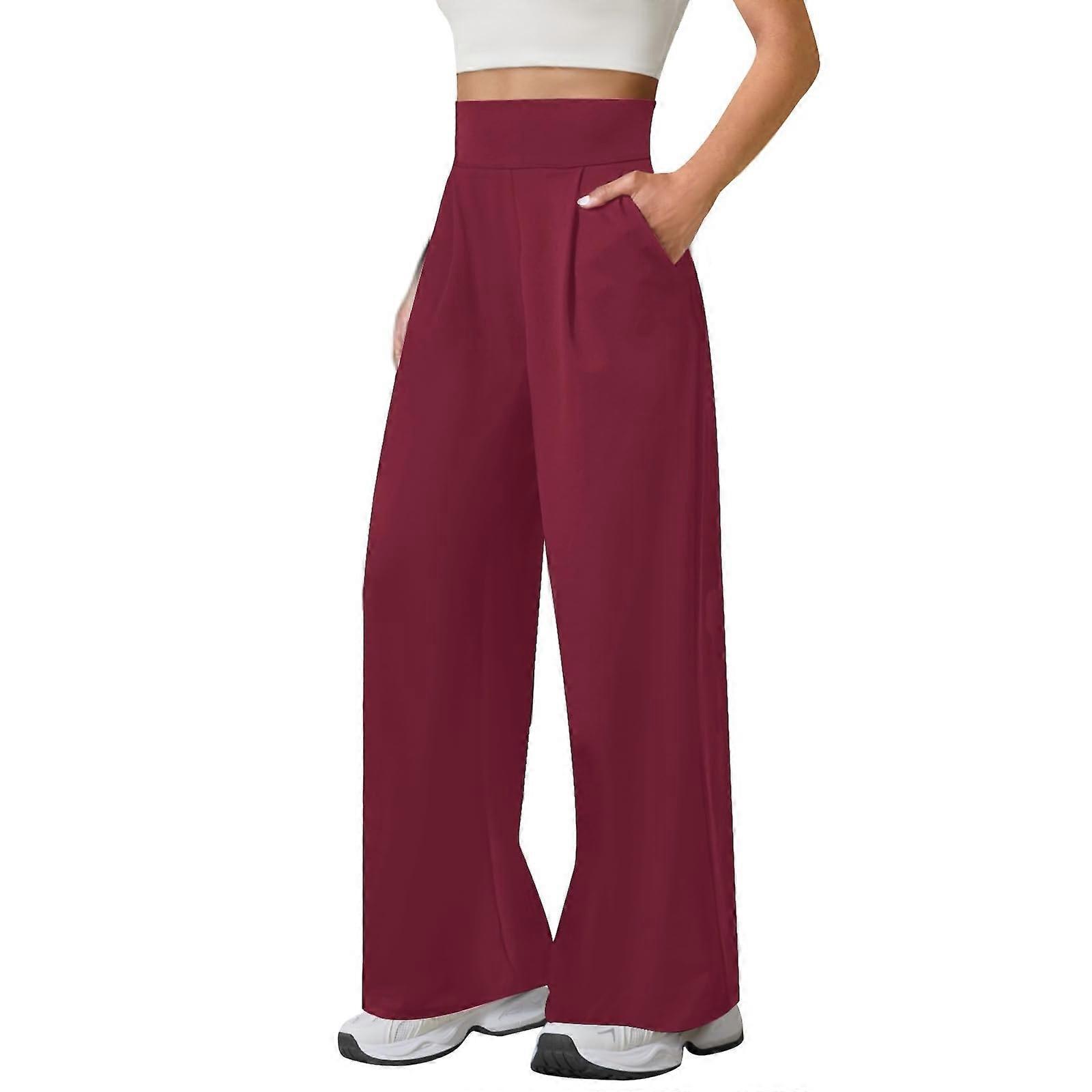 Womens Wide Leg Yoga Pants High Waisted Loose Stretch Lounge Workout Gym Trousers with Pockets Burgundy XL