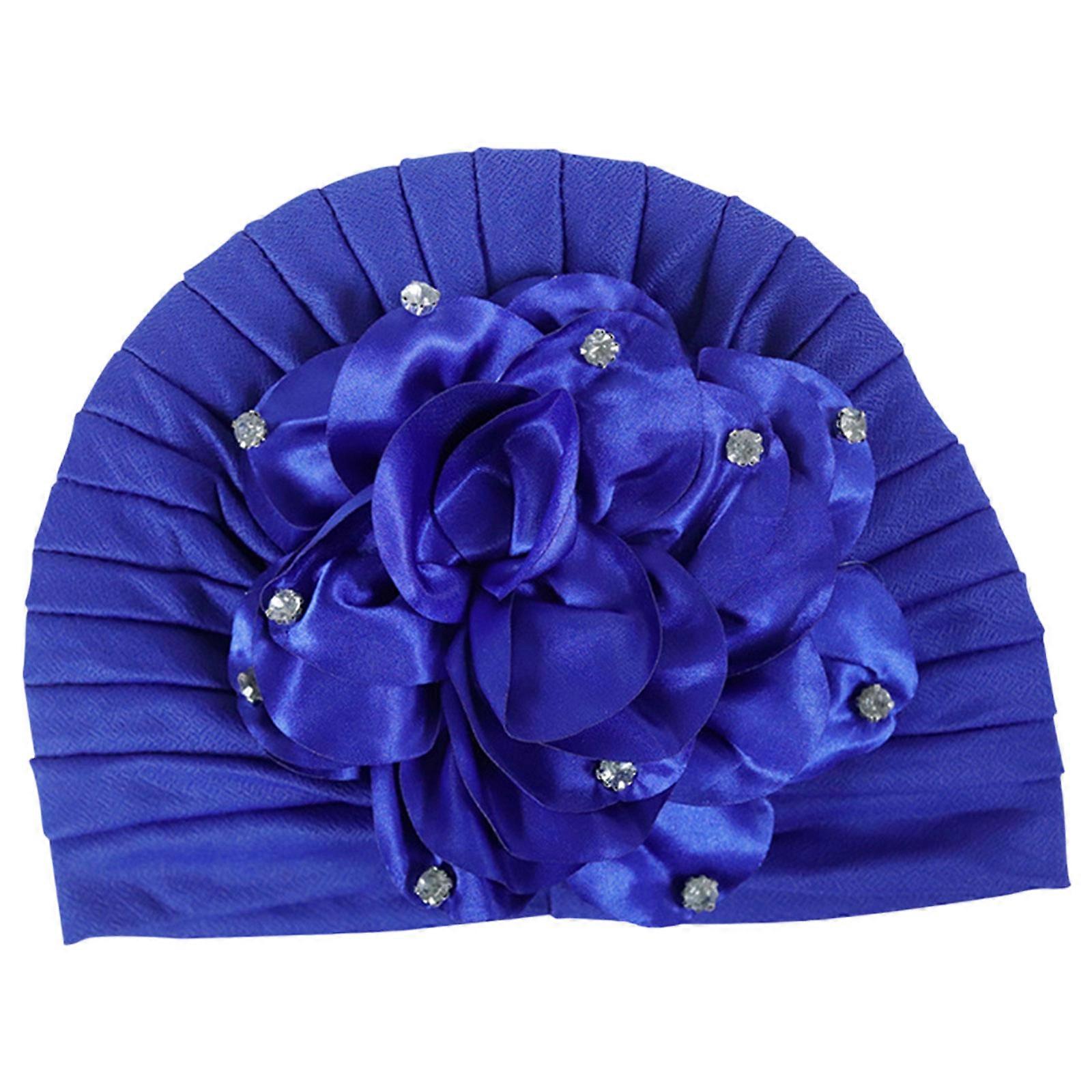 Women's Rhinestones Flower Turban Head Wrap Chemo Cancer Beanies Cap Headwear Cap Bonnet Hair Loss Hat Royal Blue