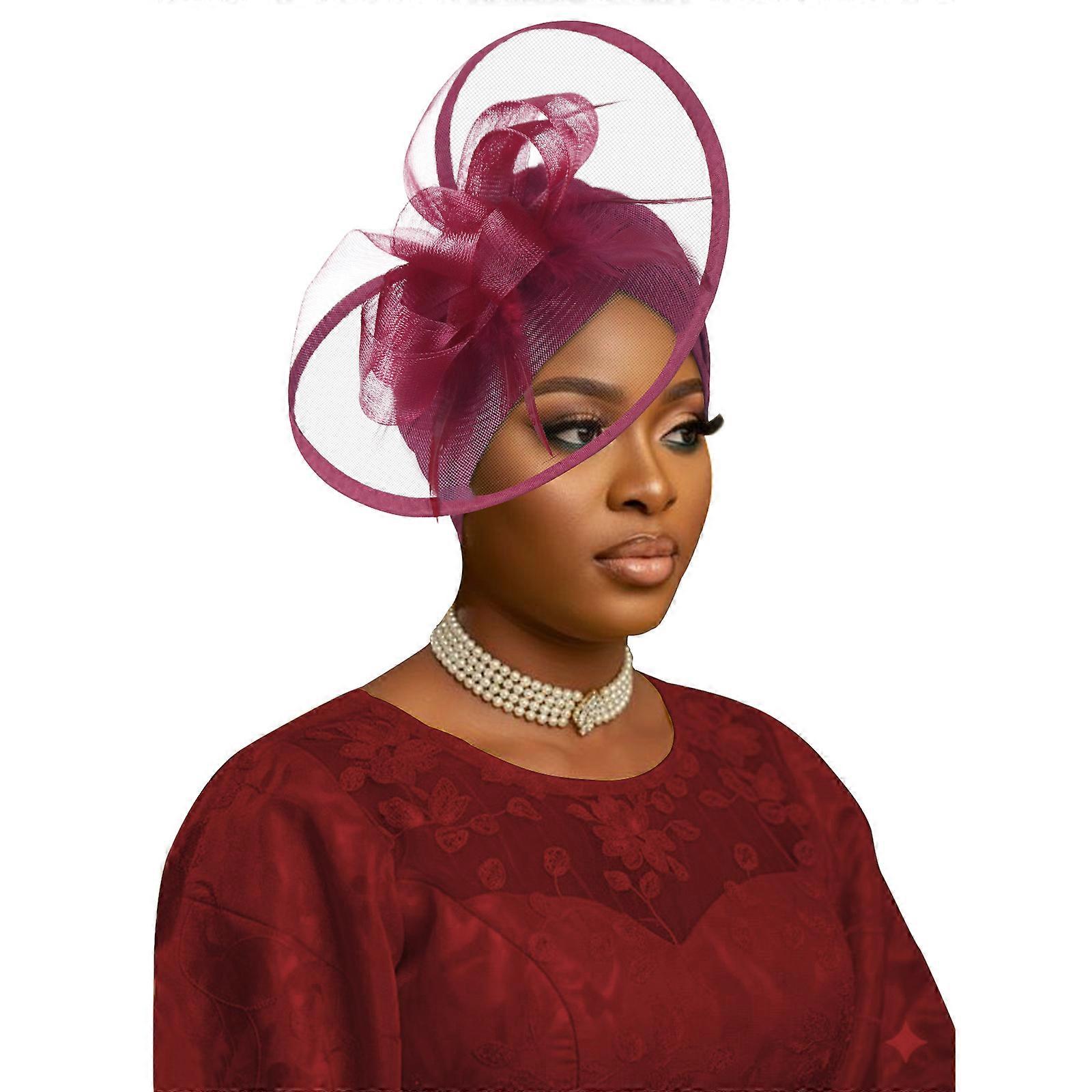 Women's Stretch Satins Turban Hat Chemo Cancer Beanies Feather Mesh Hair Wrap Cap Headwear Wine Red