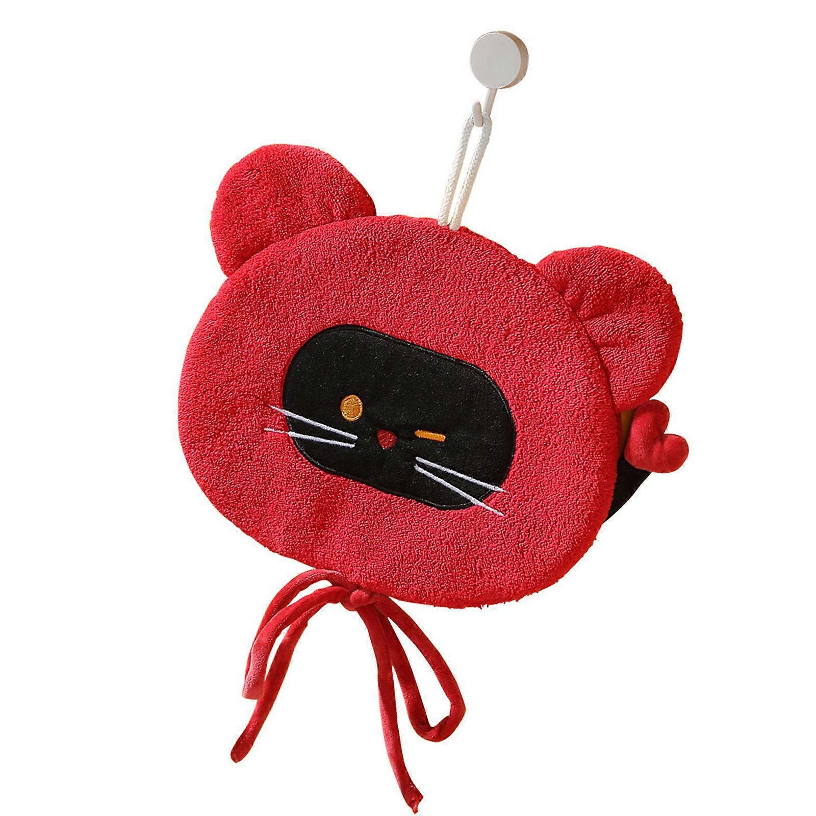 Lovely Cartoon Cats and Functional Hanging Hand Towel Craft of Corals Fleece for Kitchen Bathroom Use Highly Absorbent Red
