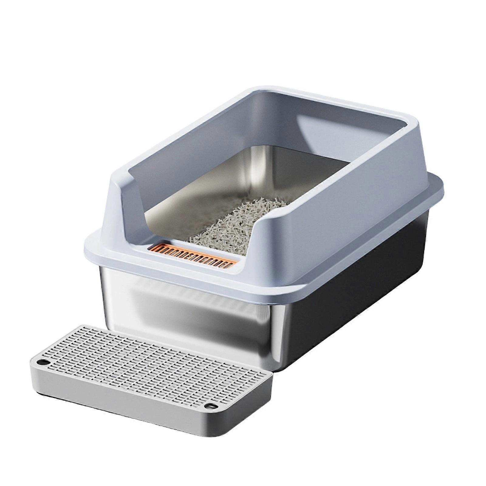 Features: This stainless steel litter box features a semi enclosed design with low entry points for effortless cat access, ensuring durability and easy cleaning to maintain hygiene without bacterials buildup. Its basin provide ample space to prevent litter scatter, while the built in filter step effectively traps paw debris for a cleaner surrounding environment. Ideal for cats of all ages, including kittens and seniors, this cat litter box reduces stress during use and accommodates multiple pets in any household setting. Designed for daily home use, the enclosed litter box enhances air circulations to minimize odors and create a sanitary toilet area that keeps your living space freshness and tidy. With its robust stainless steel construction and thoughtful ventilation, this pet litter box promotes long term convenience and a healthier experience for your cat. Specifications: Component: Stainless Steel Color: Black/Blue/LightGray/White Size: As Pictures Show Weight: 2000g Package Includes: 1x Stainless Steel Cat Litter Box note: Please allow 1-2cm errors due to manual measurement. Due to the differences between different monitors, the picture may not reflect the actual color from the item.