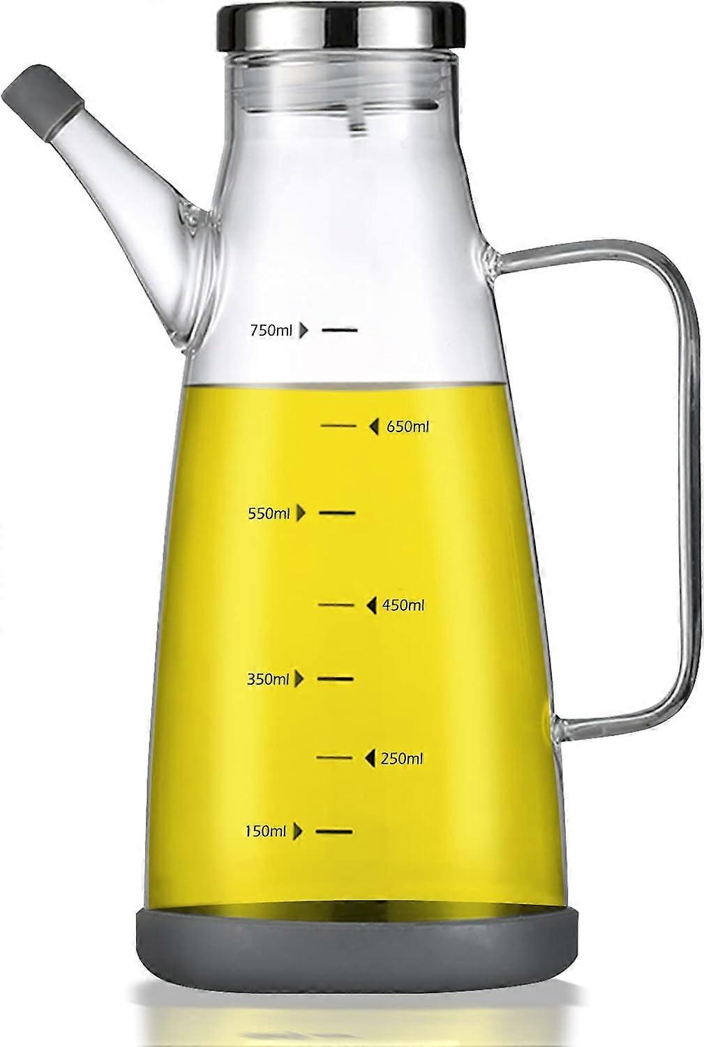 【PERFECT DESIGN】:Our Olive Oil Dispenser Bottle Can Be Used For Cooking Condiments Such As Olive Oil, Vinegar, And Soy Sauce. Strong Handle, Very Durable. It Also Has A Drip-Proof Hawk That Doesn'T Run Down The Spout After You'Ve Poured The Oil. There Will Be A Dust Cap On The Spout To Prevent Dust From Getting Into The Oil Can. The Bottom Is A Collision-Proof Silicone Base, So You Don't Have To Worry About Crashing Into Your Hard Table. 【EASY CLEAN AND USE】Wide opening, allows for swift and simple cleaning and refilling. Big handle for a comfortable grip. Easy single-handed use, eagle shape spout makes the oil flow evenly. The perfect size is great for your dinner table or picnic 【TWO CAPACITIES for Your Choose】Oil dispenser bottle 750ML size,  because of it can be combined as olive oil and vinegar dispenser bottle set. it also can hold more condiment such like soy sauce, vinegar, cooking wine, sesame oil etc. Suitable for kitchen cooking, table seasoning, garden barbecue, Grill and various commercial restaurants and Teppanyaki to use. 【KEEP OLIVE OIL & VINEGAR FRESH】Our large cooking oil dispenser is made of high borosilicate glass, heat resistant and sturdy. Oil bottles for kitchen with silicone sealed cap and stainless steel lid, perfectly keep dust out ensure the freshness of liquid stored. no drip bottle spout, Making your kitchen countertop still stays clean at all time.