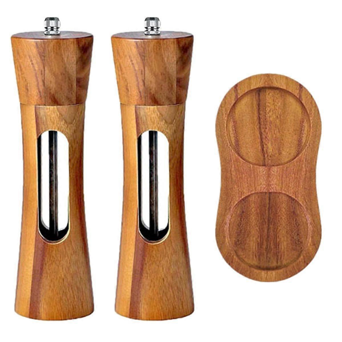 Pepper Wood Salt and Pepper Mill Manual Salt Mill Spice Mill with Adjustable Ceramic Grinder for Pe