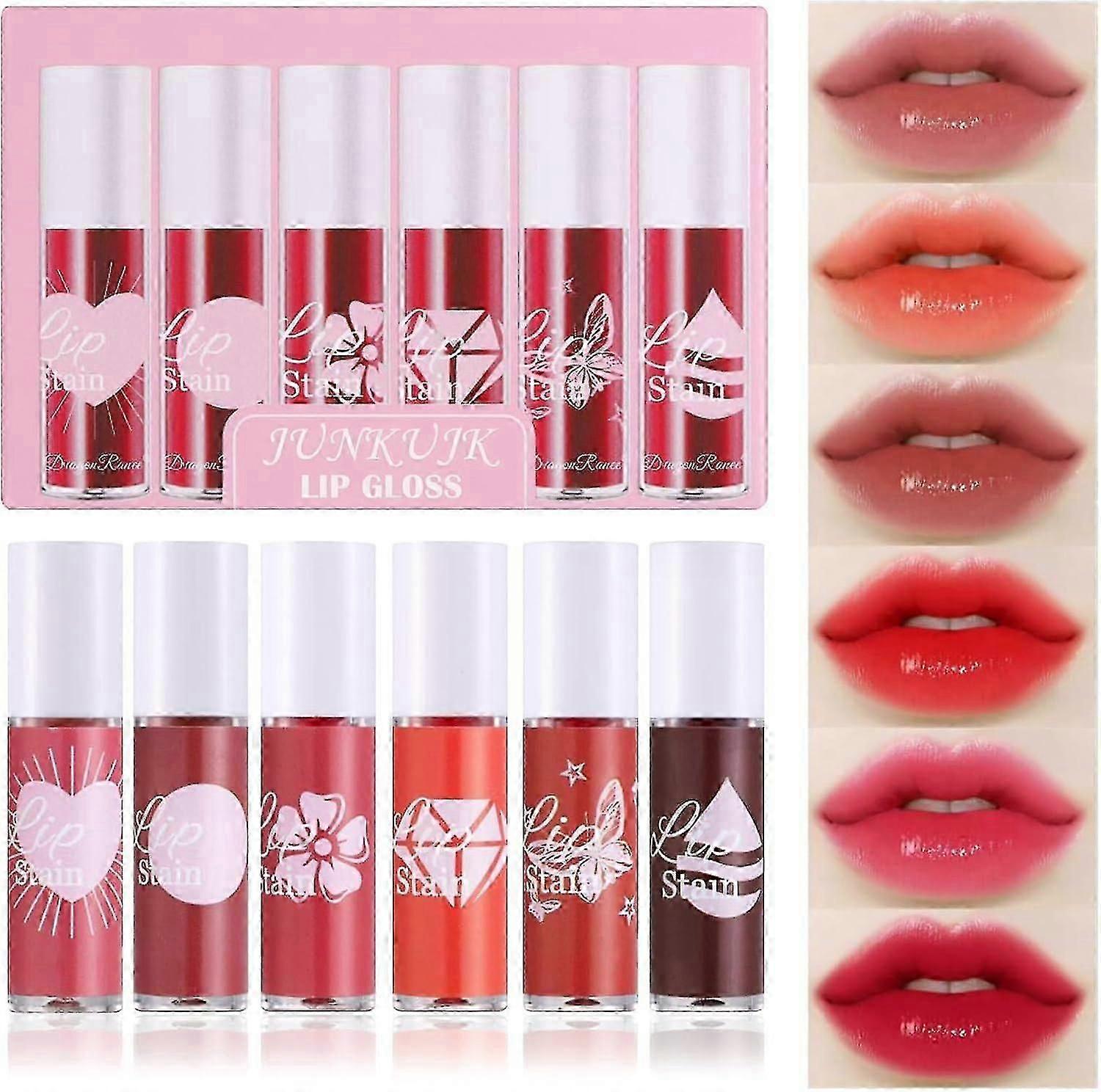 6 Colors Lip Tint Stain Set, Mini Liquid Lipstick Moisturizing Long Lasting Plumping High Pigmented Set Waterproof Cheek Lip Tint Makeup