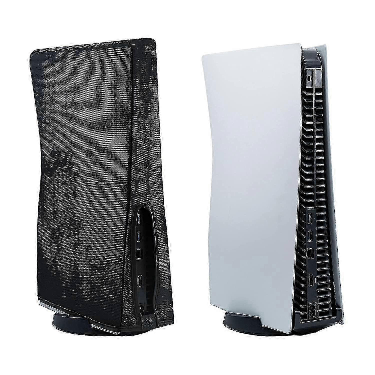 PS5 dust cover, made of Oxford cloth, scratch-resistant and waterproof, suitable for PS5 digital and disc versions. Black, Upright.