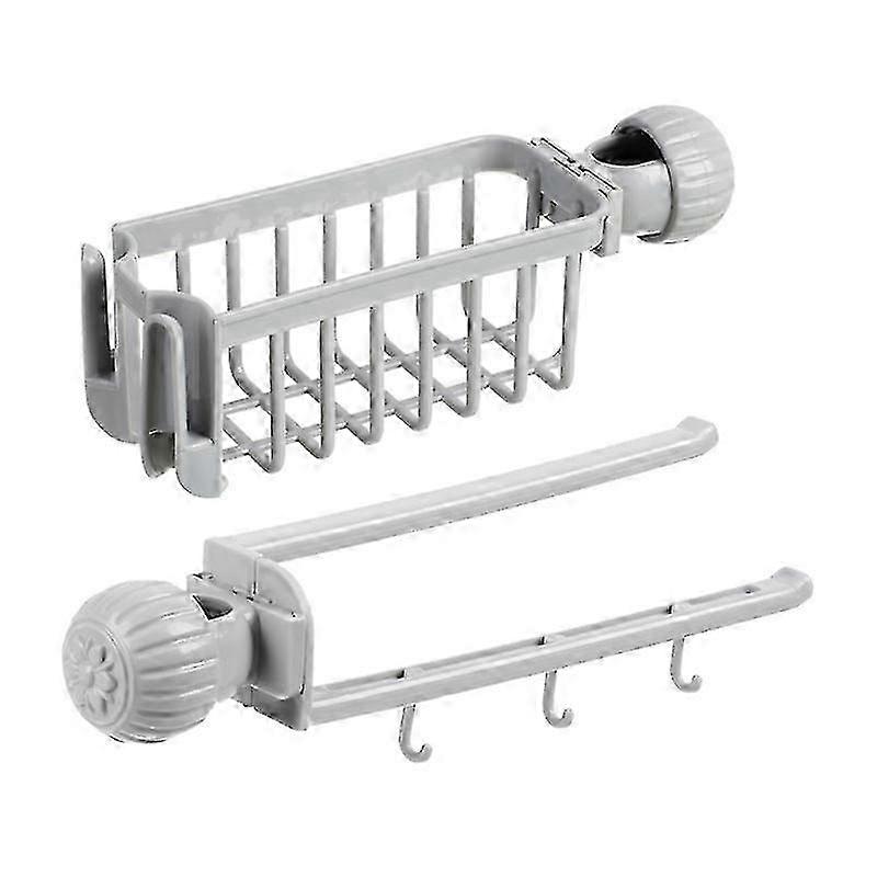 2-Piece Faucet Drainer Rack, Kitchen Sink Organizer, Sponge Organizer, Dishcloth Holder (Gray)