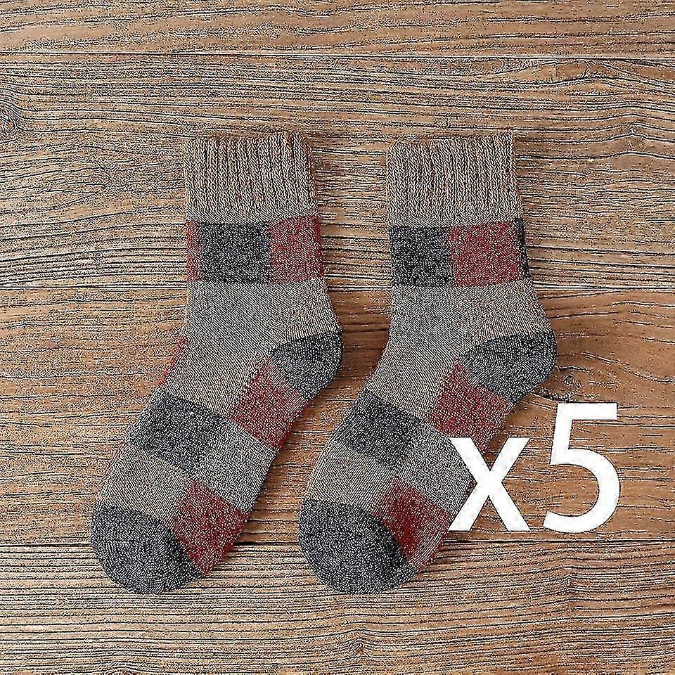 5 Pairs Men‘s Thick Plaid Wool Winter Socks, Harajuku Retro Snowproof Casual, US 6.5-12