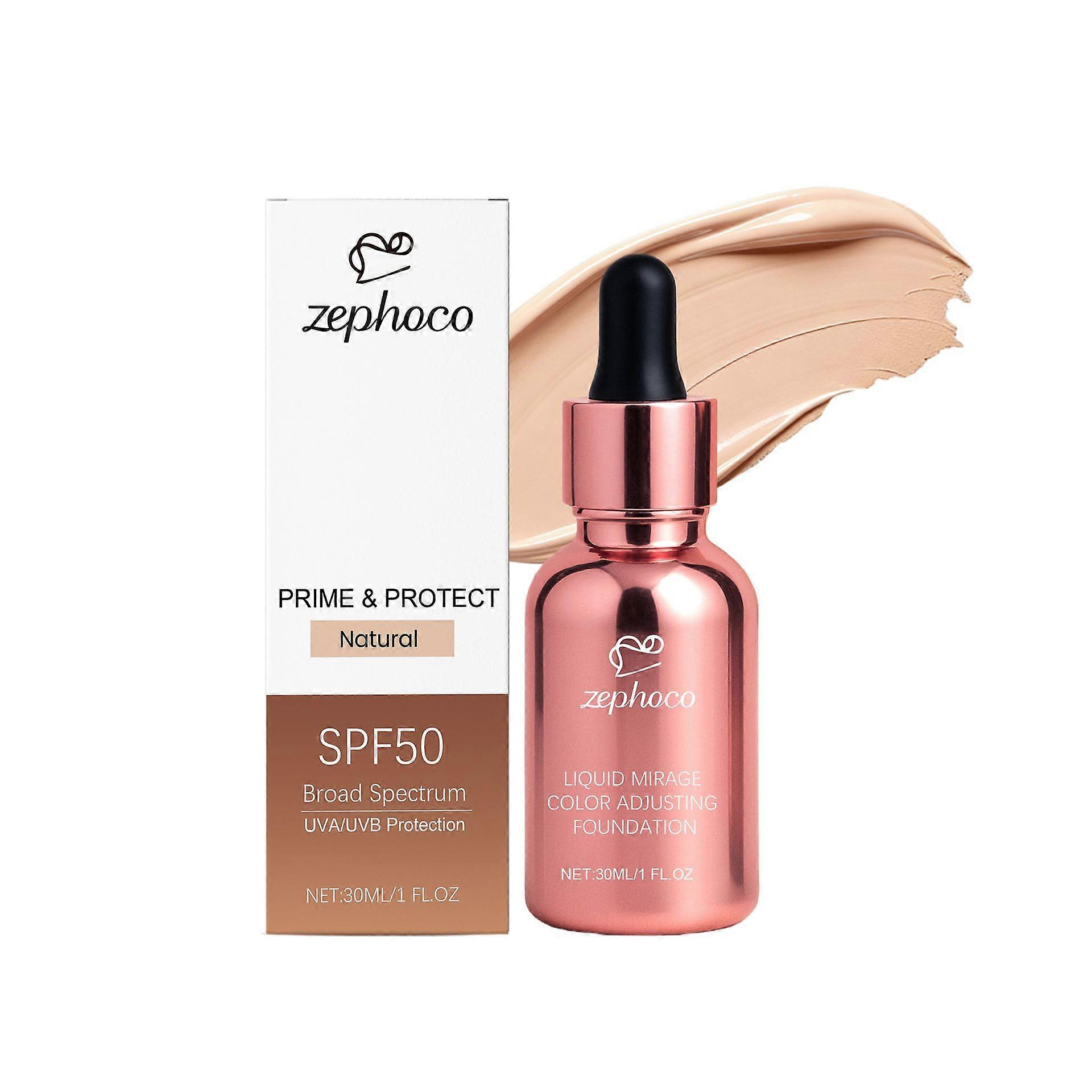 Color Changing Foundation with SPF 50 Primer, Hydrating & Lightweight Face Makeup, 4 in 1 Liquid Foundation, Concealer & Moisturizer