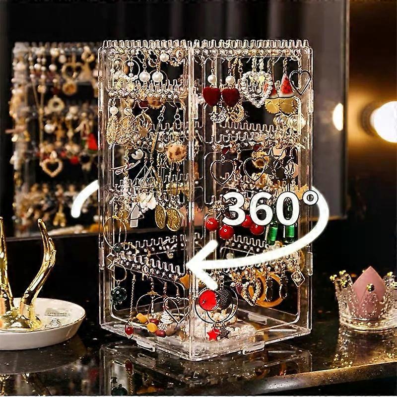 Earrings Jewelry Box Display Frame Rotating Large-capacity Multi-layer Transparent Axle Hanging Earrings Necklace Shelf.