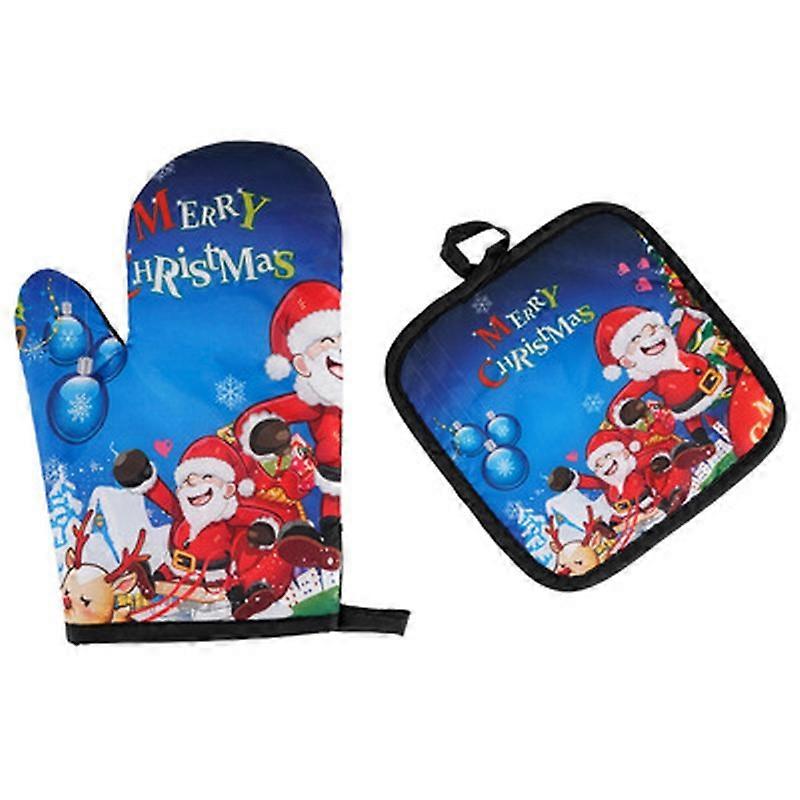 2Pcs/Set Kitchen Anti-Hot Gloves Christmas Microwave Glove Potholder Gloves Mitts for BBQ Insulation Gloves Oven Mitts Baking