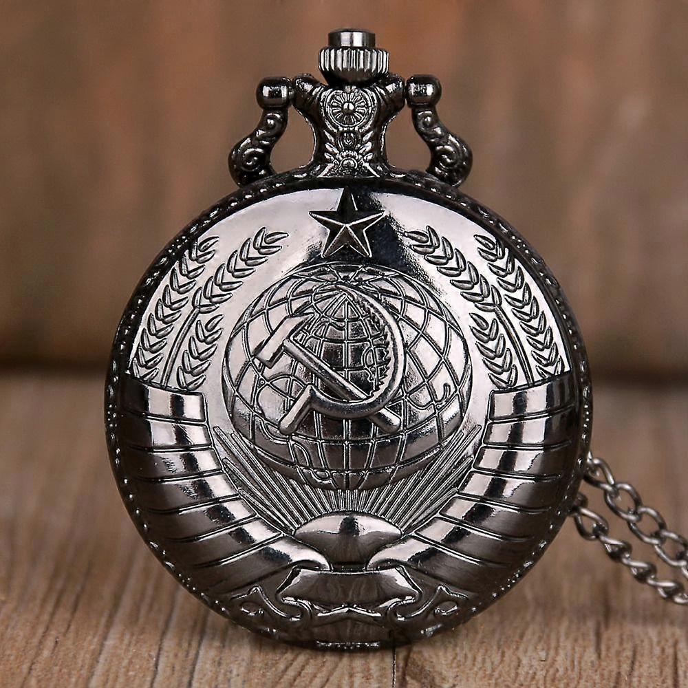 Vintage Emblem Soviet Badges Hammer Sickle Pocket Watch Retro Rcomsia Army Communism Necklace Clock Chain for Men Women