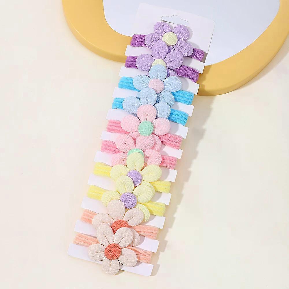 10pcs Cute Girls Nylon Flower Hair Ties Candy Elastic Bow Hair Bands Pigtails Hair Rope Rubber Hair Gum Scrunchies Accessories