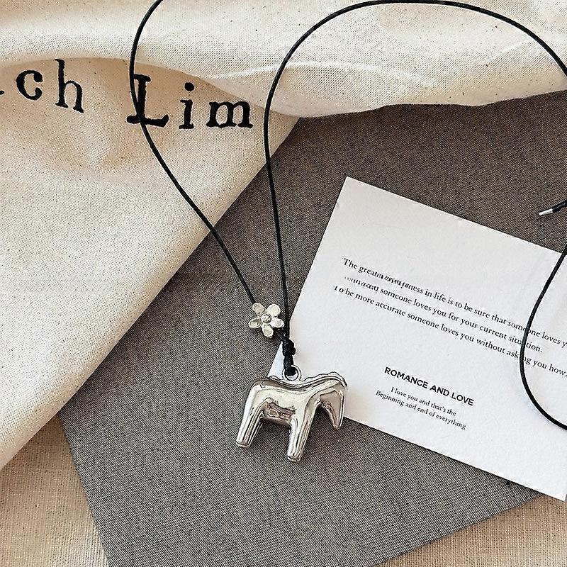 Funny Smooth Surface Metallic Cartoon Horse Flower Pendant Necklaces for Women Long Adjcomtable Wax Rope Chain Chokers