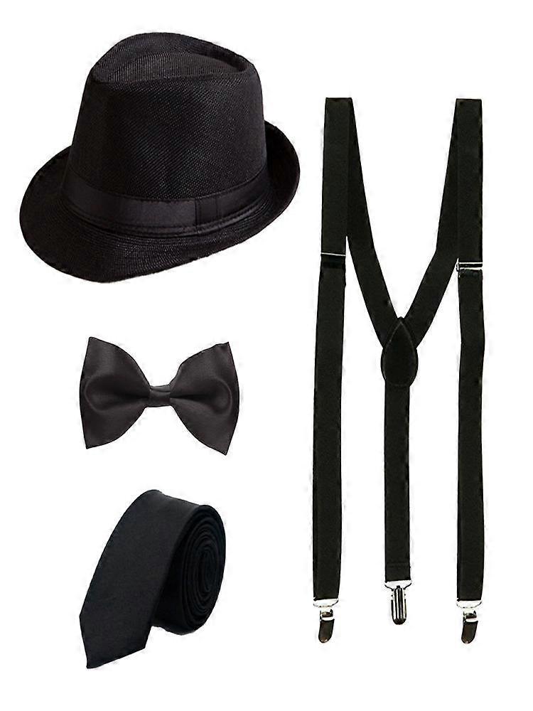 PESENAR Men's 1920s men's wear accessories suits men's Gates gang costume hats, y-braces, bow ties, watches, beards